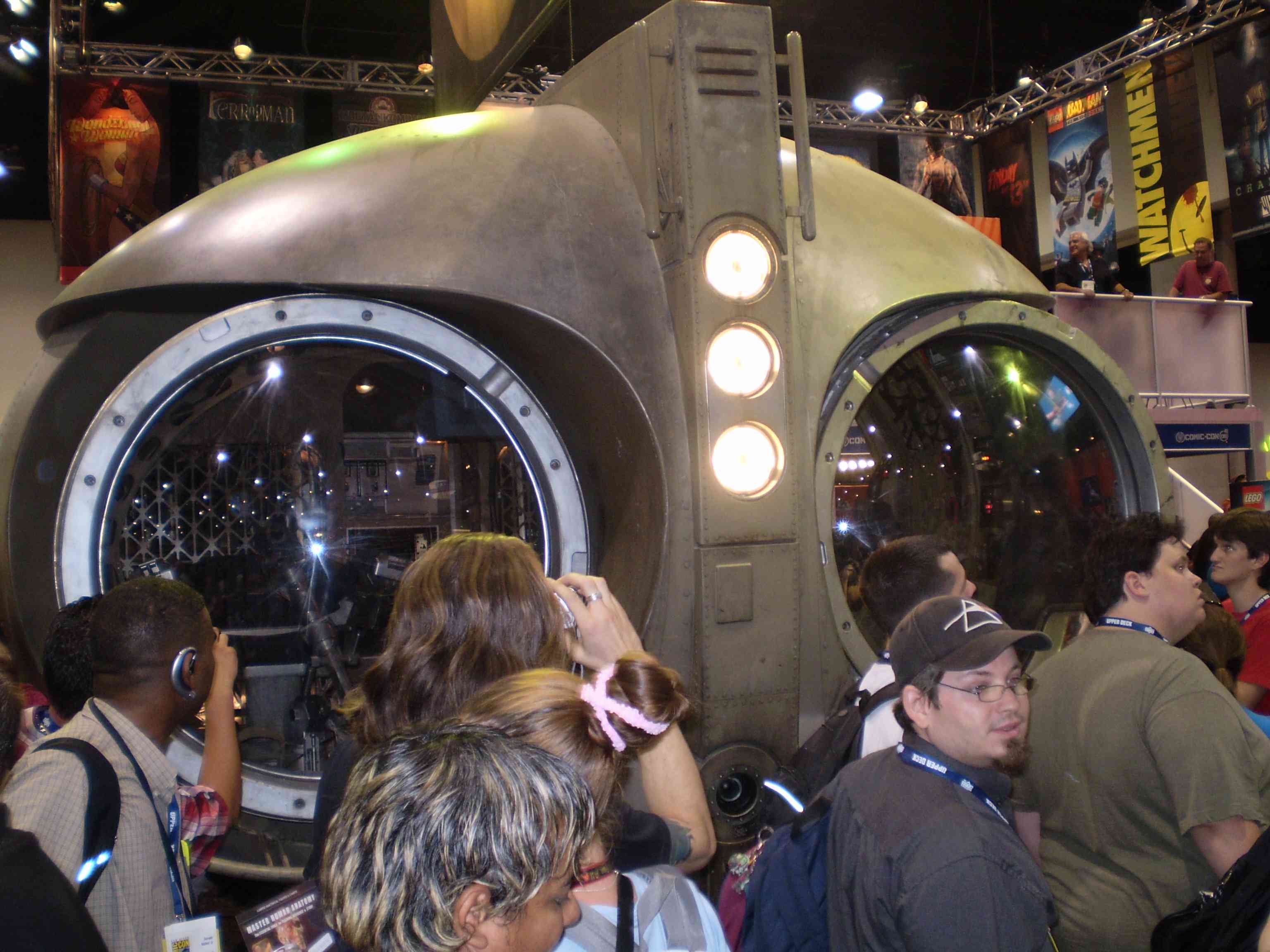 Not to be outdone, Warner Bros. made a replica of the Nite Owl’s Owlship or Niteship or whatever it’s called from Watchmen. You can peek inside after the jump.