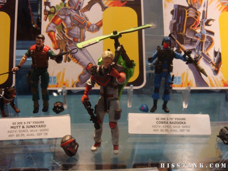 Remember that G.I. Joe poll which allowed fans to vote on the characters they wanted included in the 25th Anniversary line? Looks like the oddly named “Specialist Trakker” was one of the winners, and as rumored, he ain’t no Joe?he’s Matt Trakker, better known as the head of the Mobile Armored Strike Kommand, a.k.a. MASK. Hisstank.com snagged this pic of him in his new 3 and 3/4-inch glory, along with his mask (natch) and an odd helicopter backpack which should totally not sate MASK fans hoping for an actual in-scale vehicle. Specialist Trakker is part of Wave 11, and should be available in November.