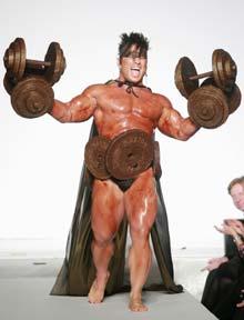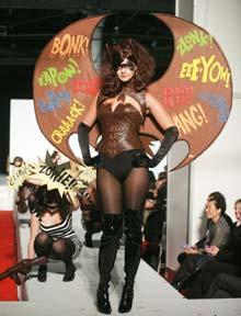 Models, dressed in carefully crafted chocolate outfits, depicted Lara Croft, Bat Girl and a warrior princess among others. The unique costumes were created by chocolatiers and pastry chefs for the catwalk show on the Hudson River.