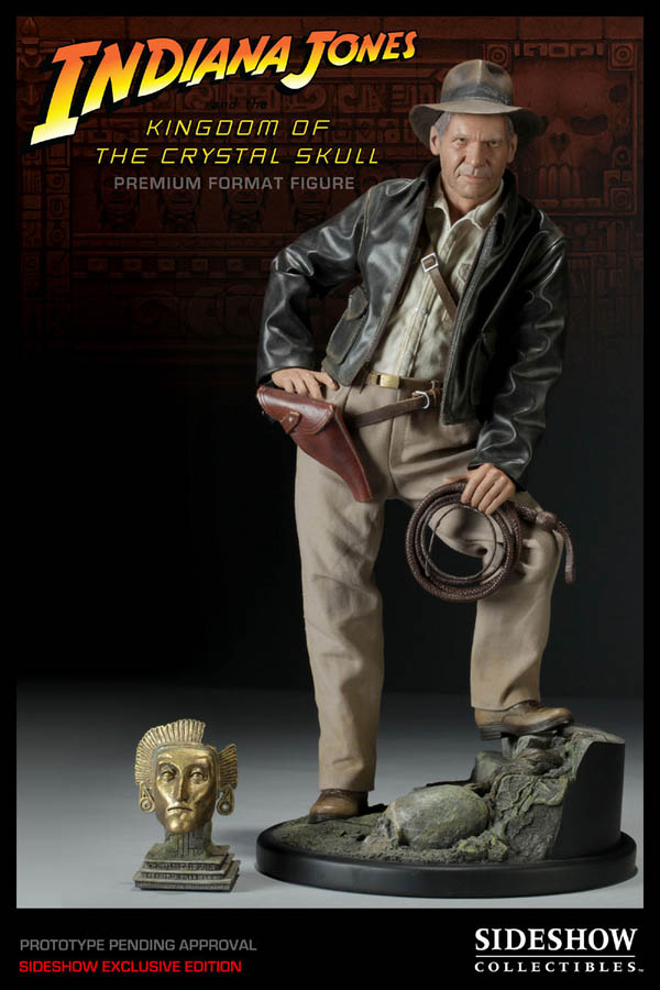 Sorry for the confusion! It’s just that I took a quick look at Sideshow’s Indiana Jones figure from Kingdom of the Crystal Skull and thought an ancient corpse had been reanimated by dark magic and put on a fedora and sensible slacks. Sideshow’s premium museum quality figures are 18+ inches-tall, and are polystone statues with real fabric outfits, and are usually pretty pricey, although if you order it from Sideshow directly, you get a free Mask of Orellana (which I have no recollection of being in the movie, possibly because it was crowded out by the fridge, the vine-swinging, and the groundhogs). I’m not sure why they decided to protray Indy as being 108 years old, but whatever.They certainly did a great job at making him look like he’s going to keel over and crumble into dust at any second. (Via ToyNewsI)