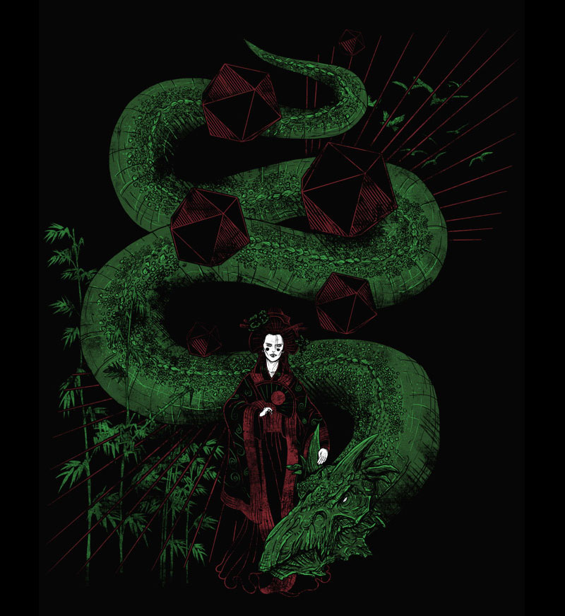 ?? I love it when the one-shirt-a-day companies have something TR appropriate on Geek Apparel day; it makes my life so much easier (now that it’s particularly hard). Ript has this shirt, starring a geisha and a dragon — and a bunch of 20-sided dice for no apparent reason — on sale today only for $10. The best part is that no one but other nerds will realize those things are dice.