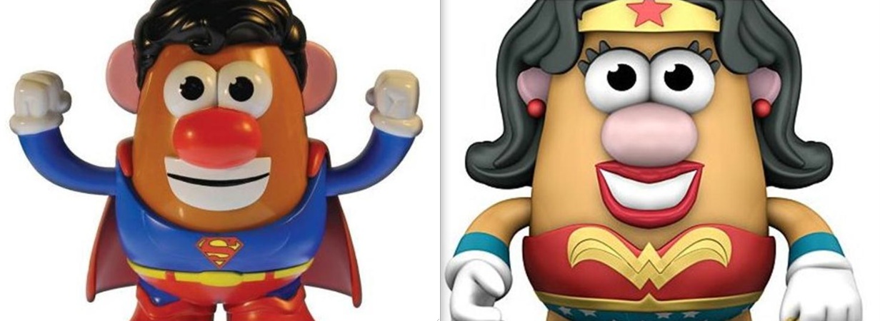 ?In addition to The Caped Cru-Tater (not his real name but it totally should be), PPW Toys will be releasing the above Superman Mr. Potato Head and an actual toy based on the art of Wonder Woman Ms. Potato Head above, around the end of the summer. You can pre-order them at Big Bad Toy Store for $20 each. I have to say, I don’t approve of these themed Potato Heads not having potato-based pun names. Hasbro, I suggest Tuberman and Wonder Wo-Mash. Email me at toplessrobot@gmail to find out where to send my check.
