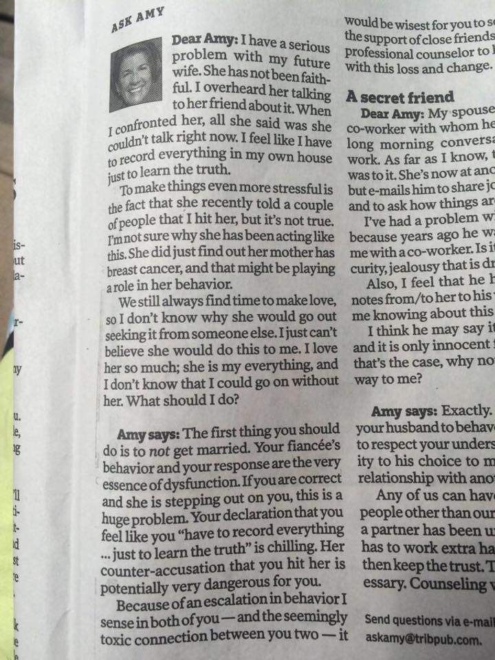 I’m not sure what the date is on this column, but actor Greg Sestero just shared it on social media. To fans of The Room, the infamously bizarre “black comedy” by Tommy Wiseau, the question is as dead a giveaway as if a Rocky Horror fan wrote in complaining of being kidnapped by a Sweet Transvestite.