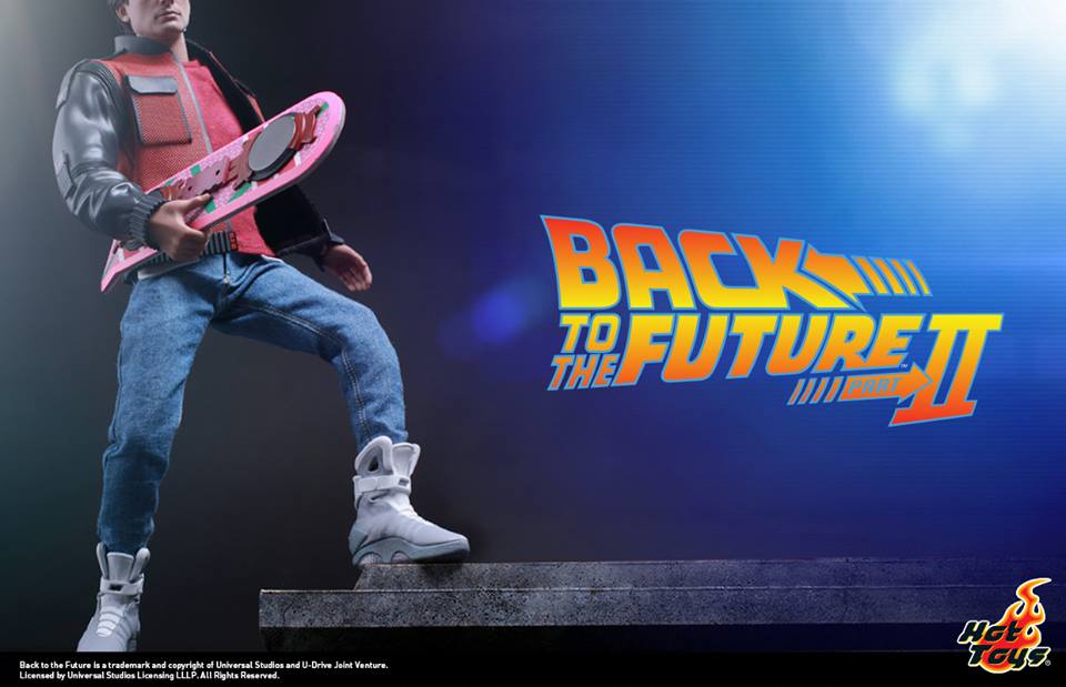 They’ve already made and revealed a regular Marty, who includes a fully removable outfit, skateboard, backpack and scene-specific accessories like a “Save the Clock Tower!” flier. But today, as Marty is scheduled to make his arrival here in our present/his future, we get a first-look at the sequel figure, with self-lacing shoes, neon cap and hoverboard.