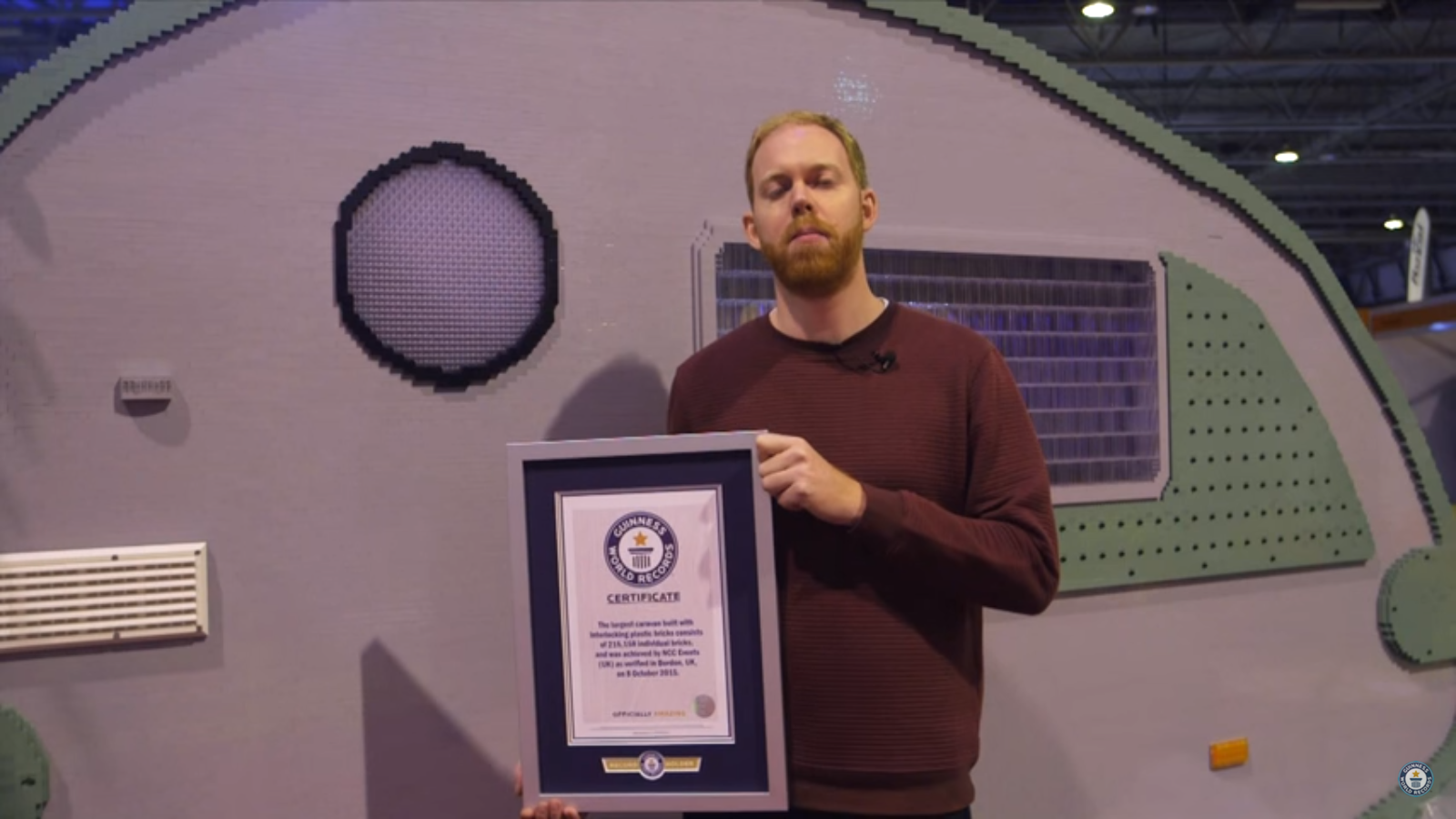 If you never knew there was a Guinness World Record for “the largest caravan built with interlocking plastic bricks,” you do now (you know, a generic category title even though NOBODY WILL DO THIS WITH MEGA BLOKS OR KRE-O, EVER). This life-size creation includes running water, electric lights, a working fridge and seats that fold up to make a bed, all done with 215,158 individual bricks. They could probably have made the stove work, but were worried that doing so might melt the plastic.