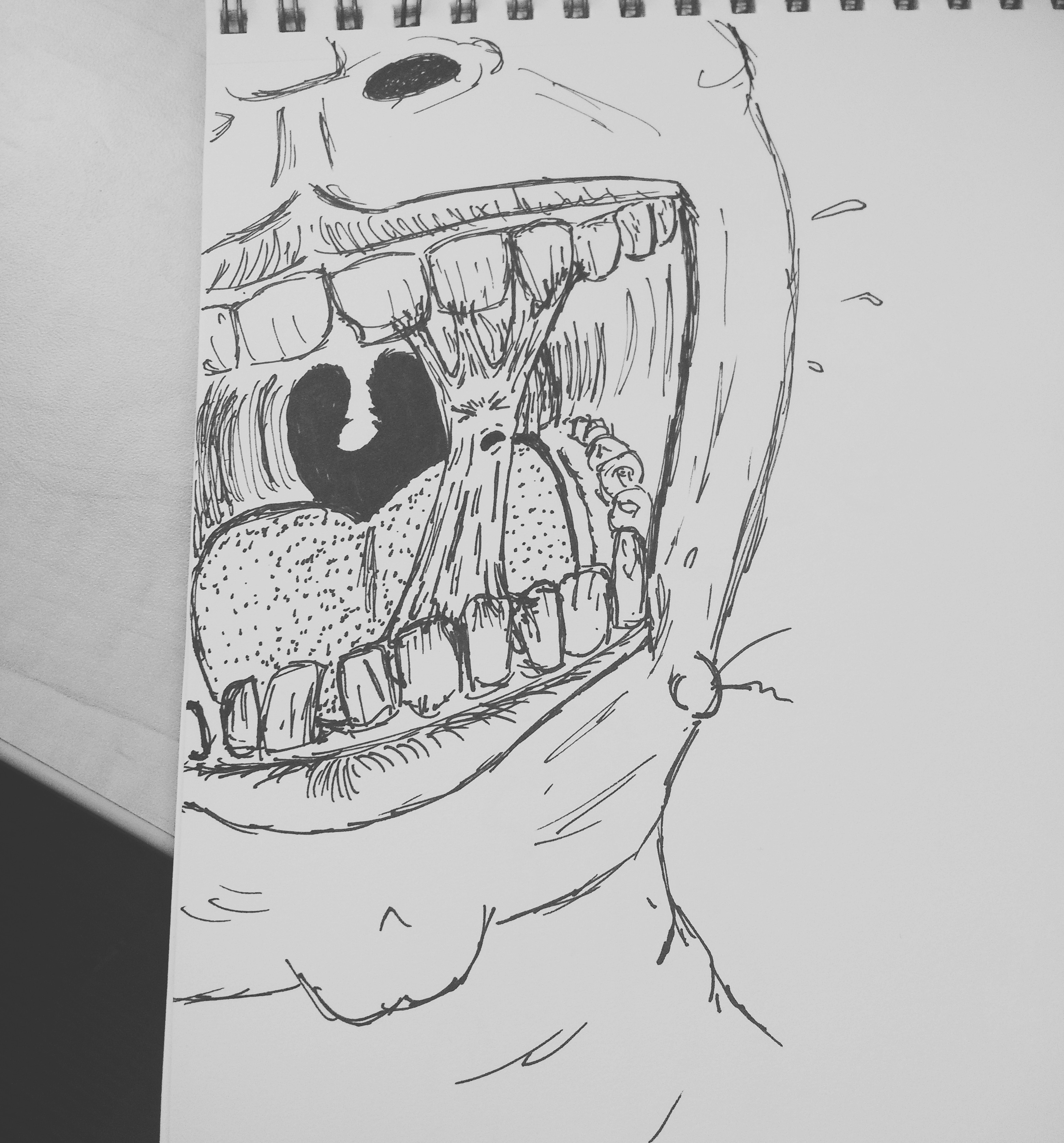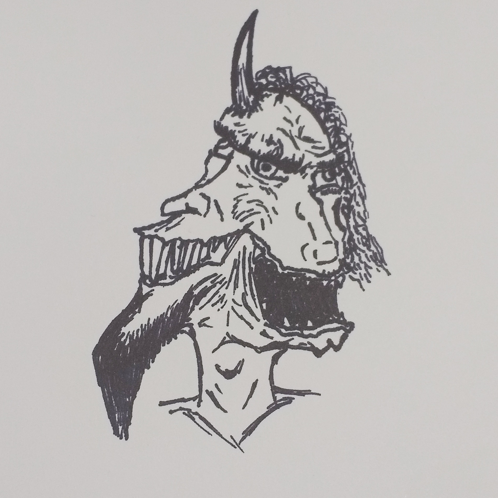 Since I felt a bit outshined when it came to cute drawings, I decided to fall back into my other comfortable niche – body horror – once more. This quick doodle of the Greek mythological figure Janus represents pretty much how I feel about the current timeline. Past and future are both conjoined, horrifying, fixated a little too much on the present, and stupid as hell.