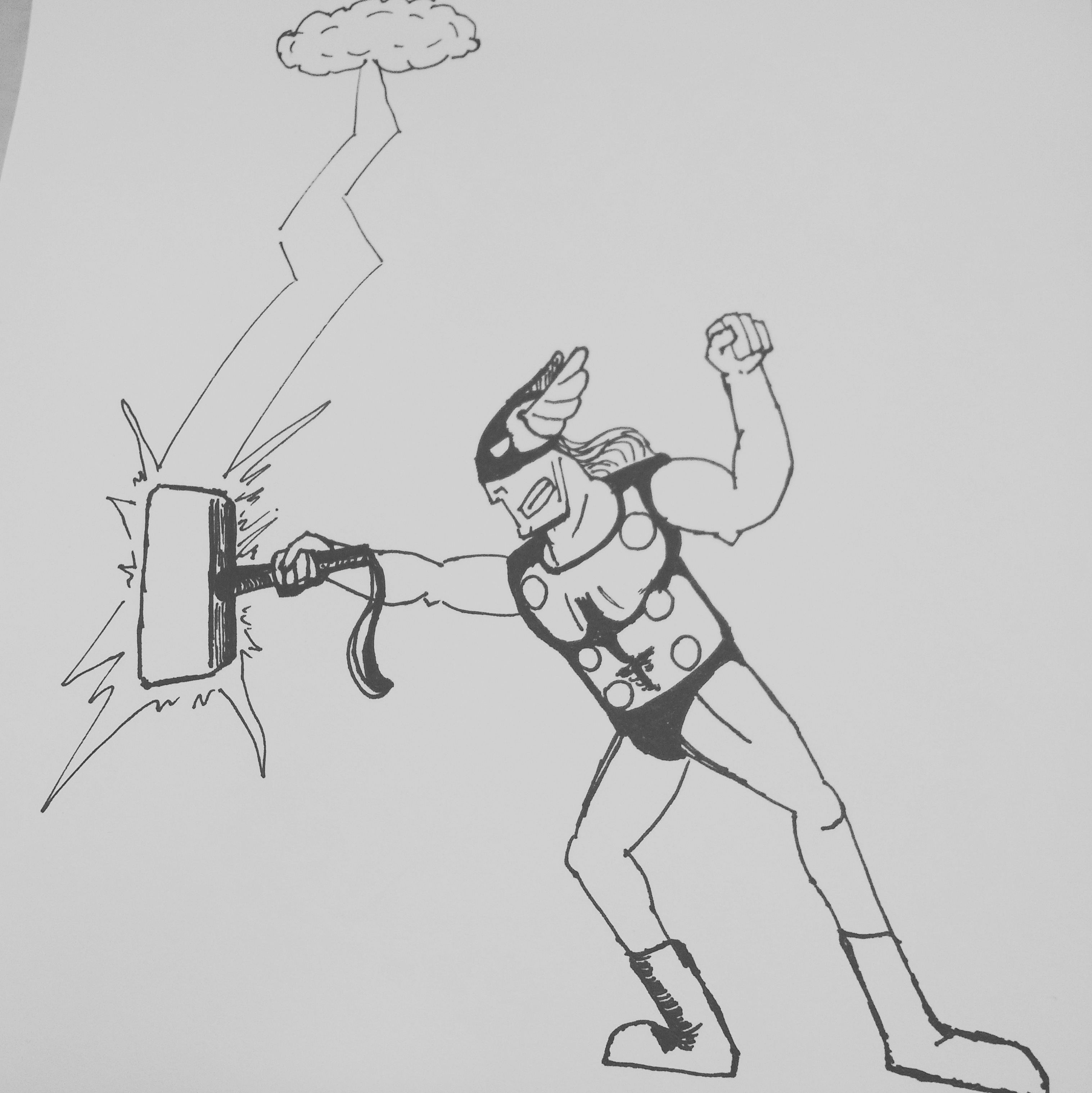 What started as an experiment in clean lines and simple cartoony presentation devolved into this amateurish mess. My rendition of Marvel’s Thor is pretty much a backwards embarrassment. God of ThunDerp, indeed.